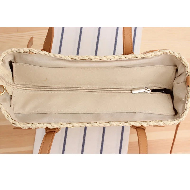Elevate your summer style with this hand-woven straw bag, perfect for seaside vacations and beach outings.