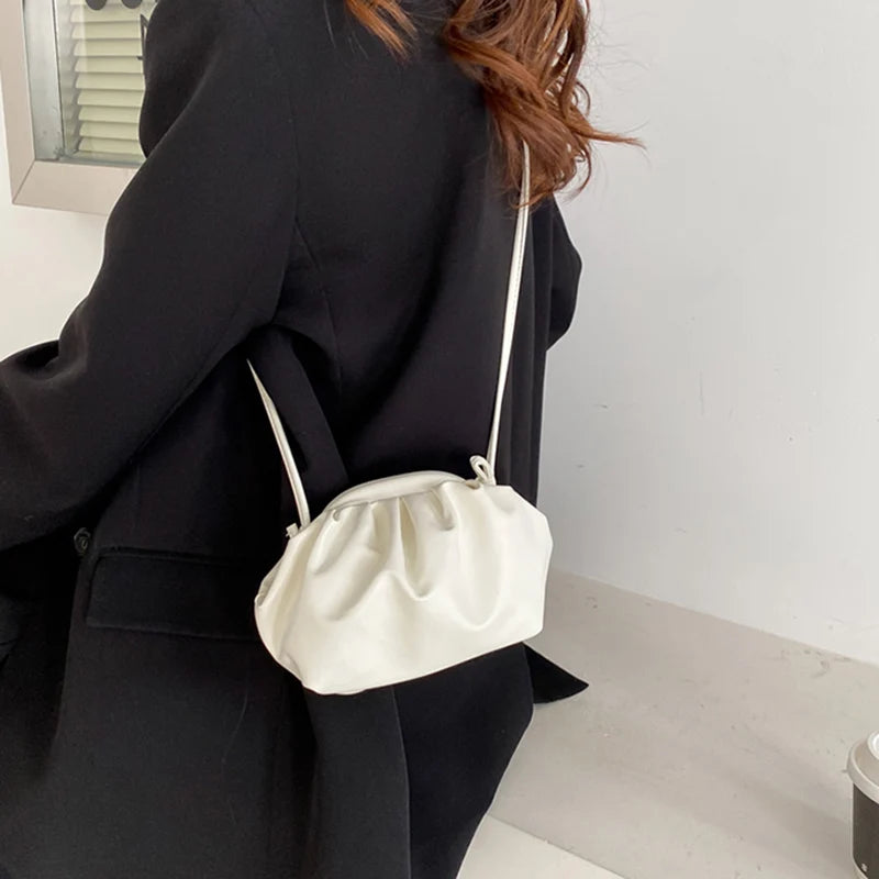 This stylish women's shoulder bag in orange is perfect for evening events. It can also be used as a messenger bag or clutch. The unique cloud design adds a touch of feminine style to any outfit.