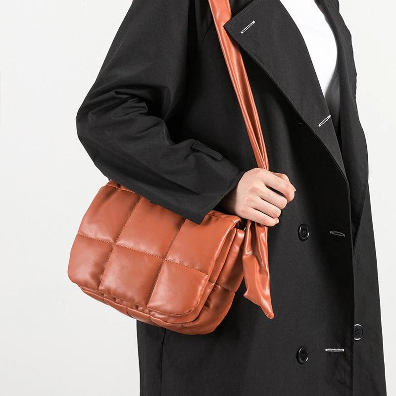 Elevate your style with this quilted crossbody bag featuring a padded pillow design. Made of high-quality PU leather with knotted details, this bag is perfect for daily use.