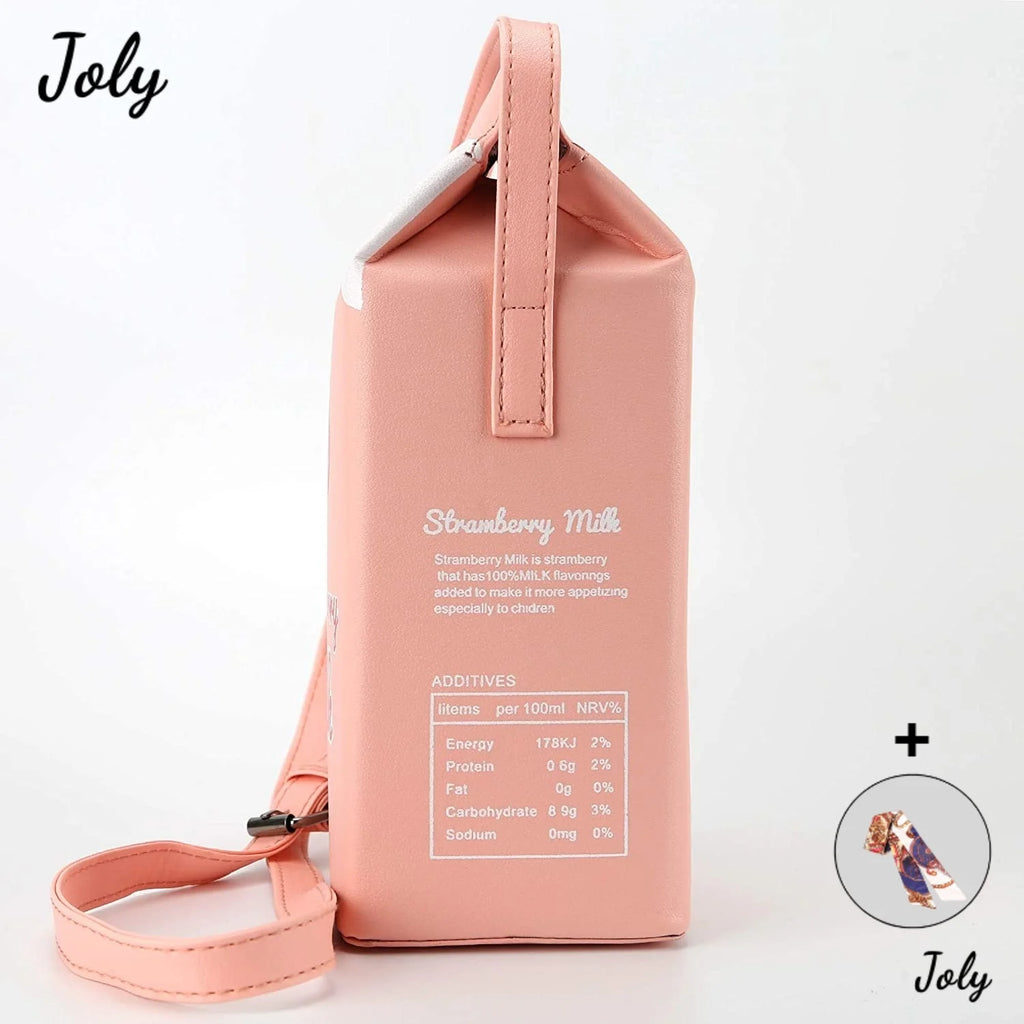 Personality Bags Strawberry Milk Box Crossbody Purse Bag for Women
