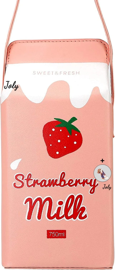 This cute and unique crossbody purse bag is designed like a strawberry milk box. It's made of high-quality PU material and features a phone shoulder wallet for convenience.