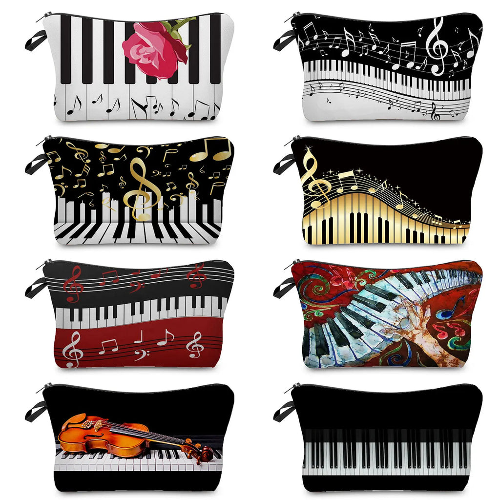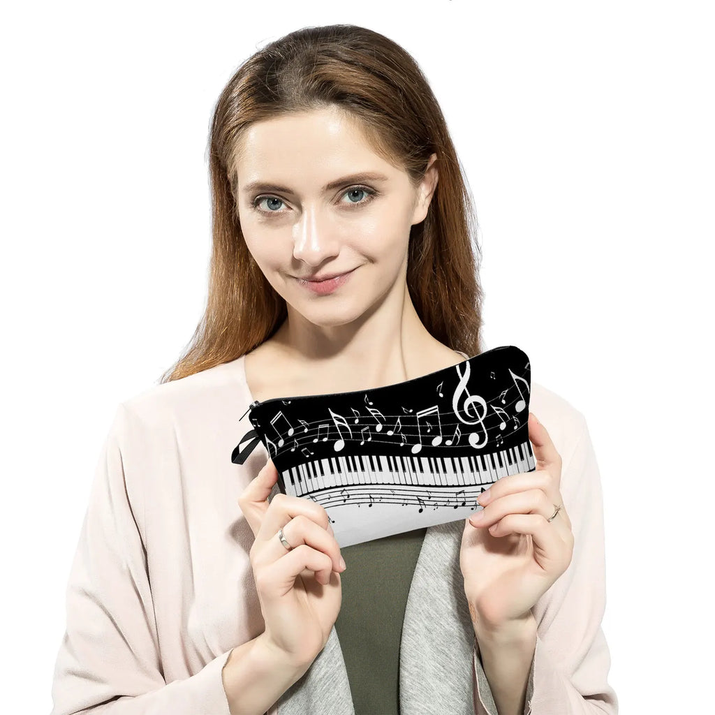 Piano Print Cosmetic Bag Organizer for Women Travel Toiletry Makeup Bag