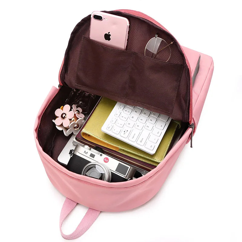 Stay stylish and organized with this pink preppy style school bag. Perfect for carrying your laptop and other essentials. Waterproof material ensures durability for everyday use.