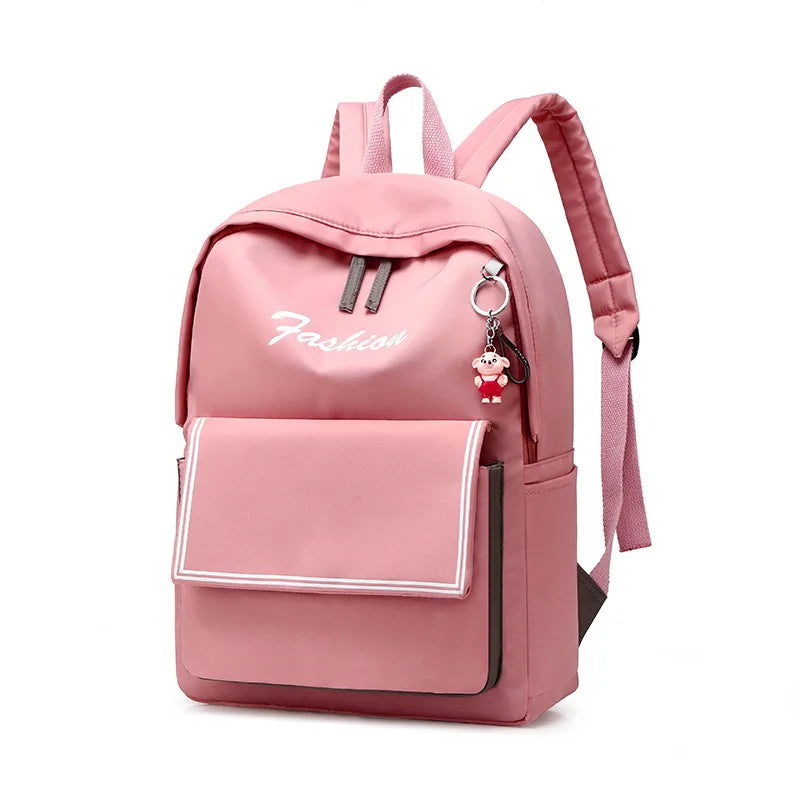 Pink Preppy Style School Bag with Pendant, Waterproof Travel Bagpack