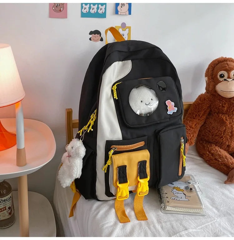 Pink School Backpack for Girls Women Shoulder Bags Travel Backpack