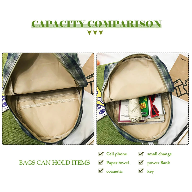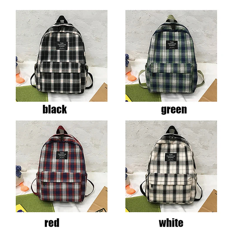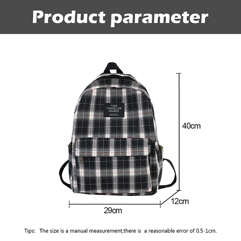 Plaid Canvas Women's Backpack Student Backpacks Large Capacity Waterproof