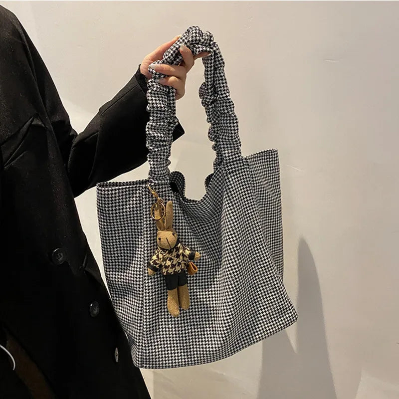 Stay stylish and organized with this large-capacity plaid tote bag. Perfect for autumn and winter seasons.
