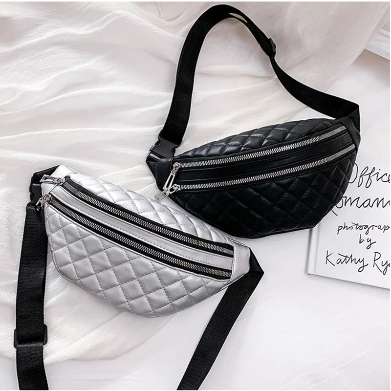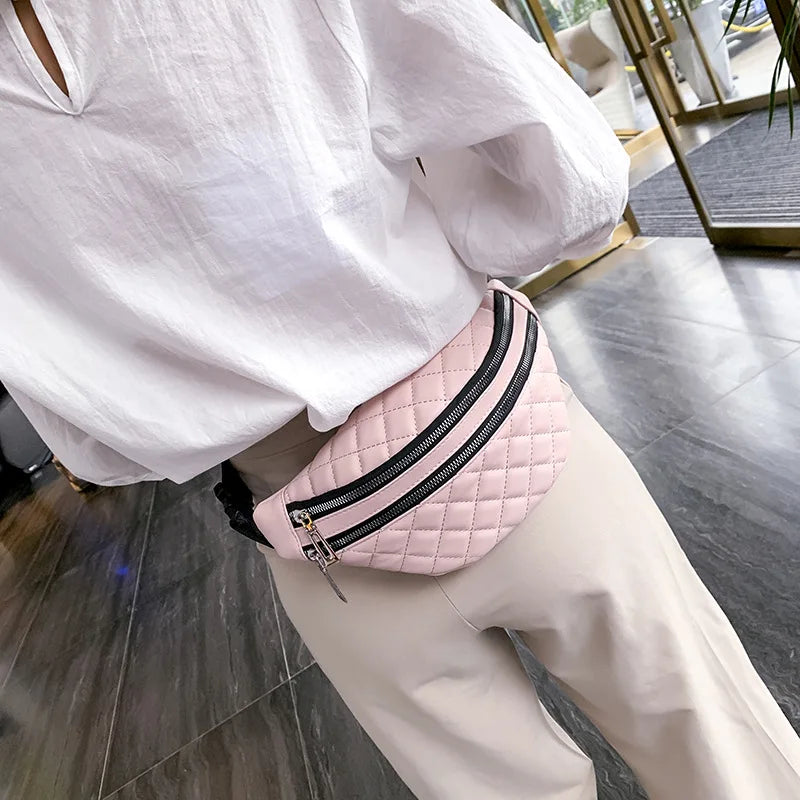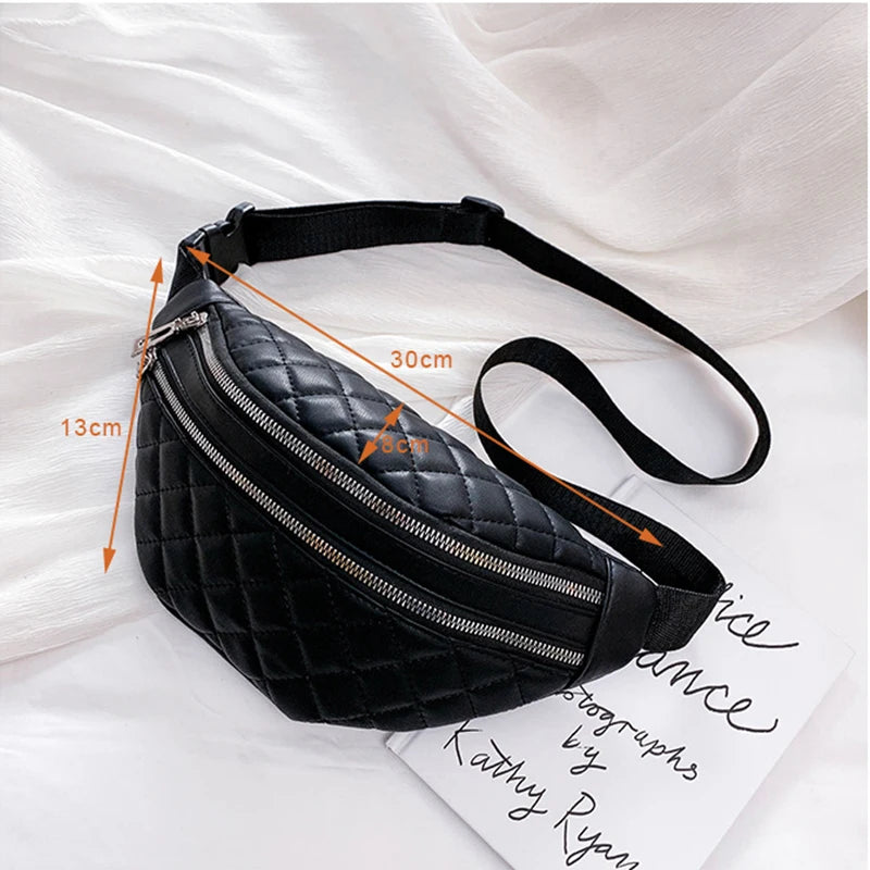 Stay stylish and hands-free with this rhombic plaid waist bag made of quality PU leather. The perfect casual accessory for women.