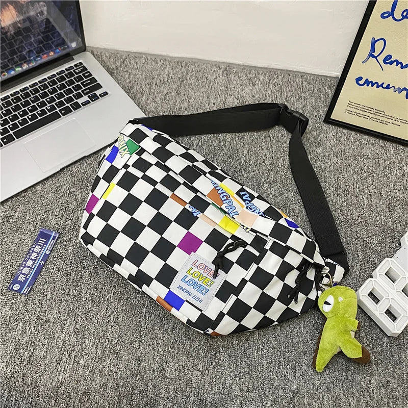 Plaid Women Backpacks Unisex Nylon Sports Ladies Messengerbags Men Chest Bags