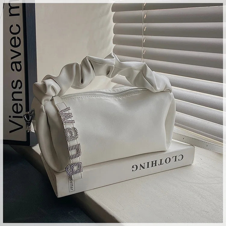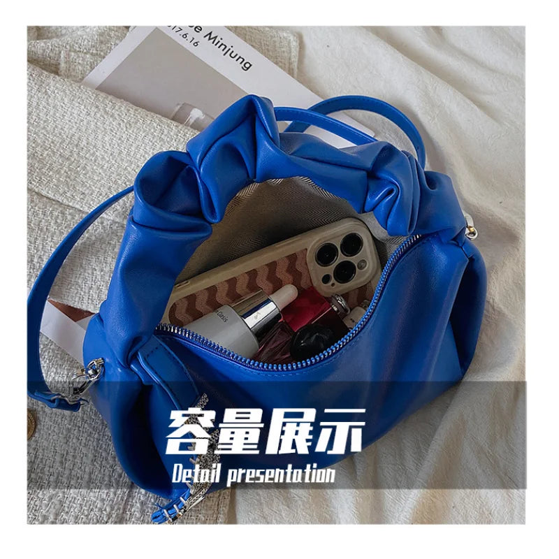 Stay stylish with this small armpit bag made of high-quality PU leather. Features a zipper closure and pleated design for a chic look.