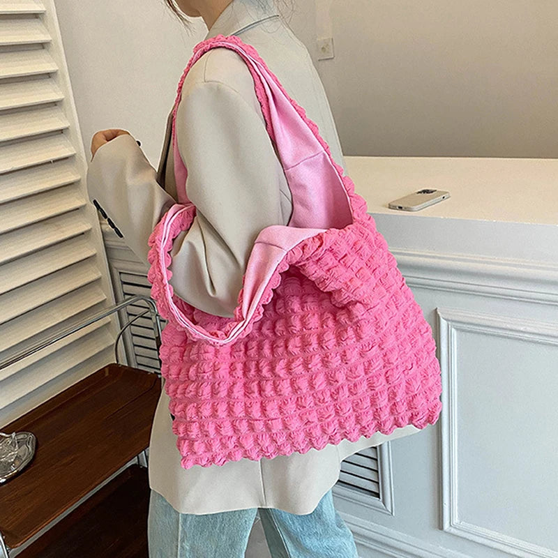 Pleated Shoulder Bag Large Capacity Tote Shopping Bag