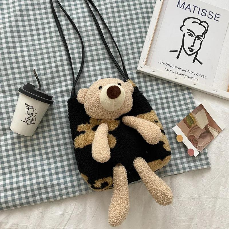 Plush Bear Crossbody Bag for Women Camping Hiking B158