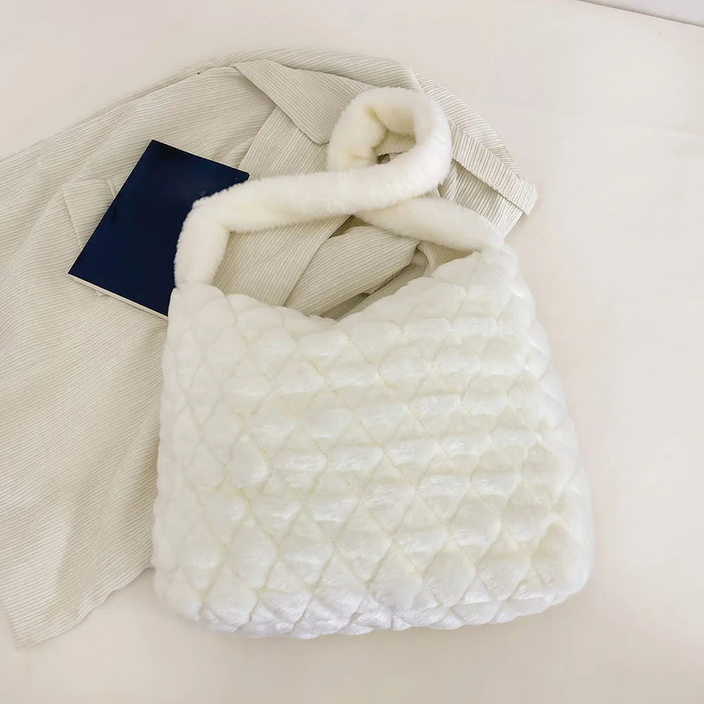 Stay cozy and stylish with this plush hand bag featuring a soft design and rhombus pattern. Ideal for daily use and travel.