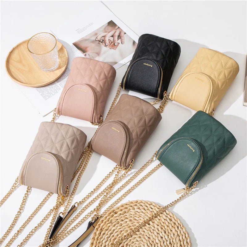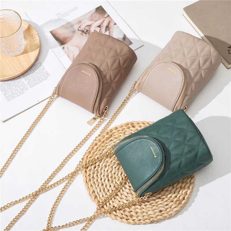 Stay stylish and organized with this versatile small cross-body bag that can also be worn as a chain shoulder bag.