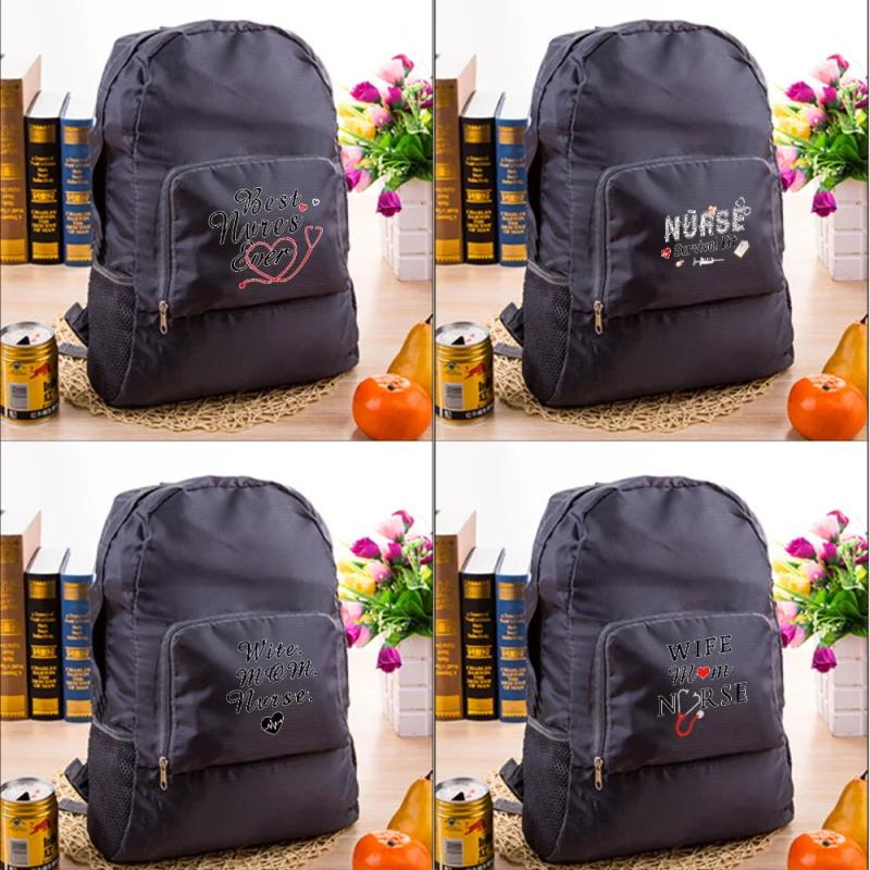 Print Nurse Lightweight Folding Backpack Repellent Bag Men Women