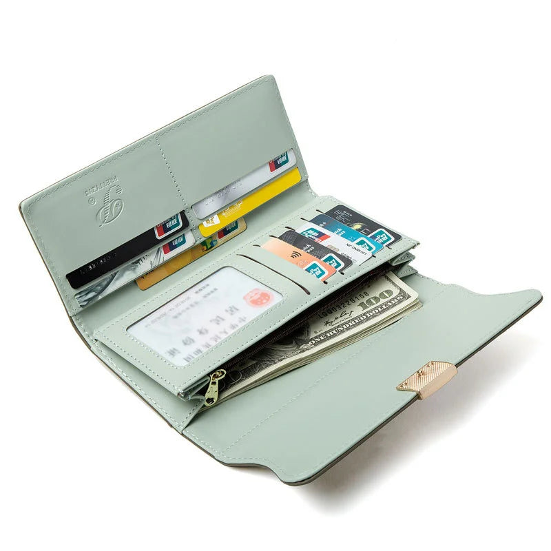 Stay organized with this beautiful and spacious women's purse. Featuring a secure buckle closure and a folding design, this wallet has ample storage for your cash, cards, and other essentials.