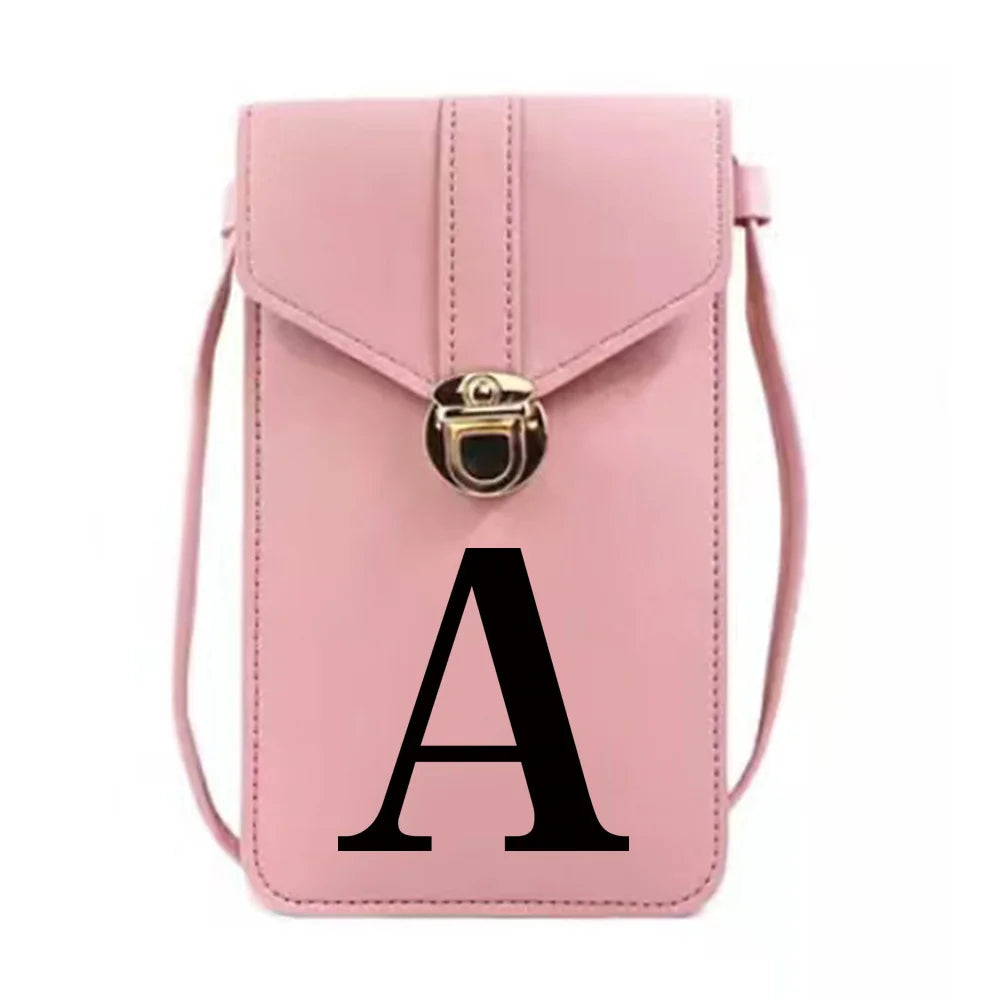 Stay organized and stylish with this PU leather crossbody bag featuring letter print design. It includes a coin purse, card holder, and touch screen cell phone pack.