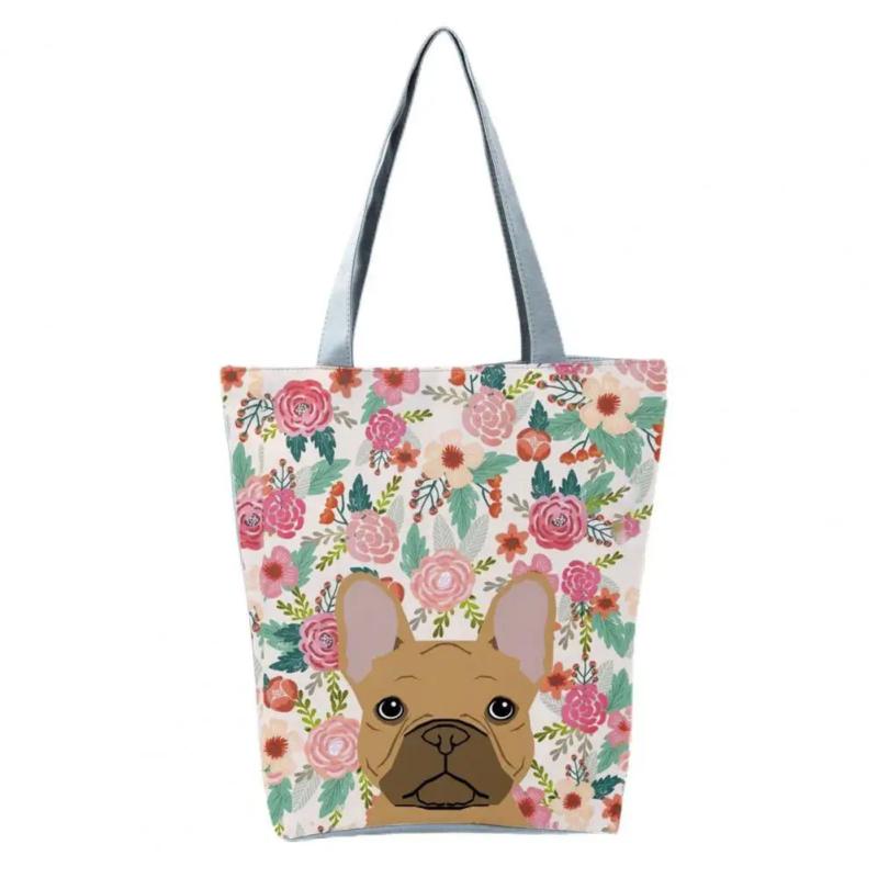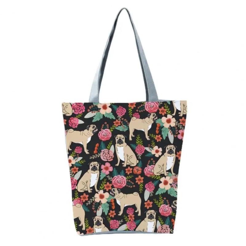 Stay stylish and organized with this fabric shoulder bag featuring a cute puppy print, double handles, and a large capacity perfect for travel.