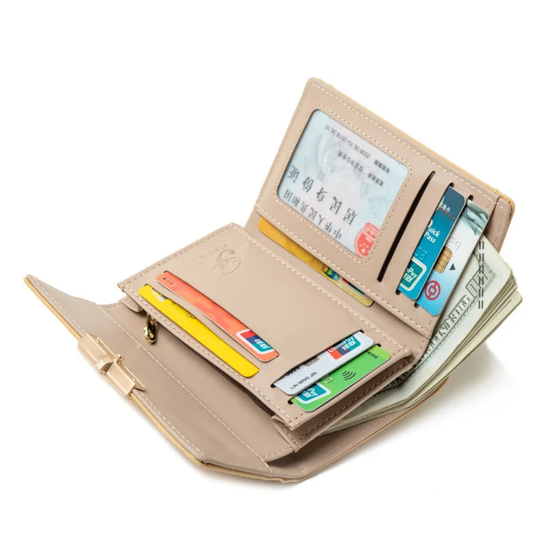 This medium-sized women's wallet features a three-fold design with a buckle closure and zipper pocket. Keep your essentials organized in style.
