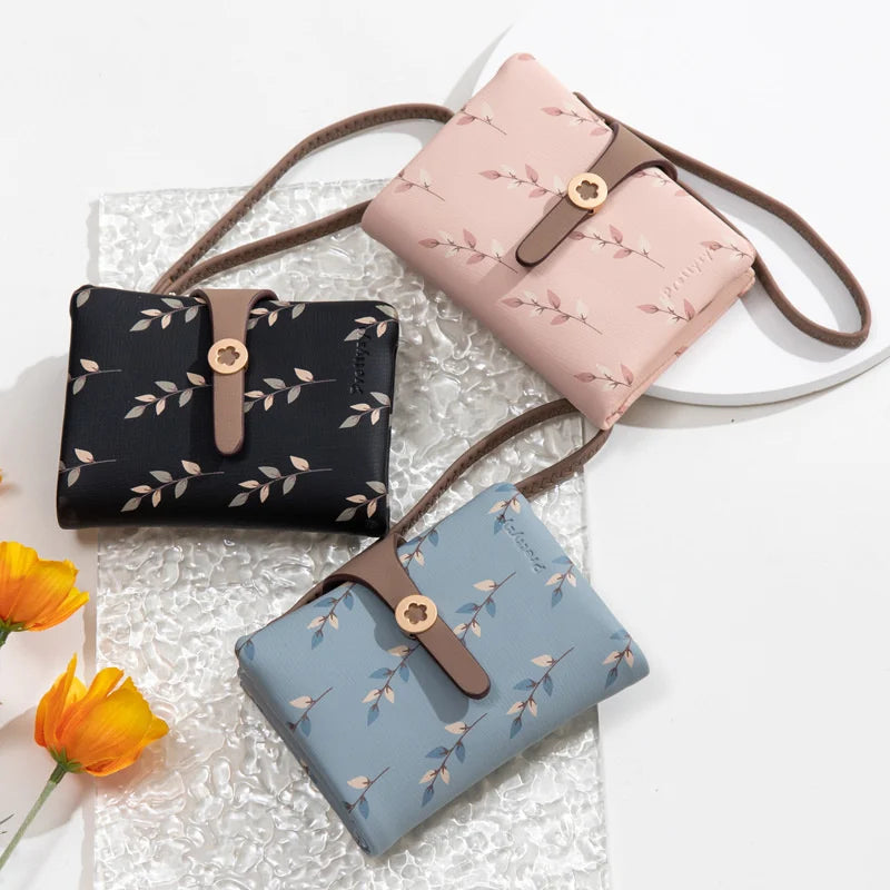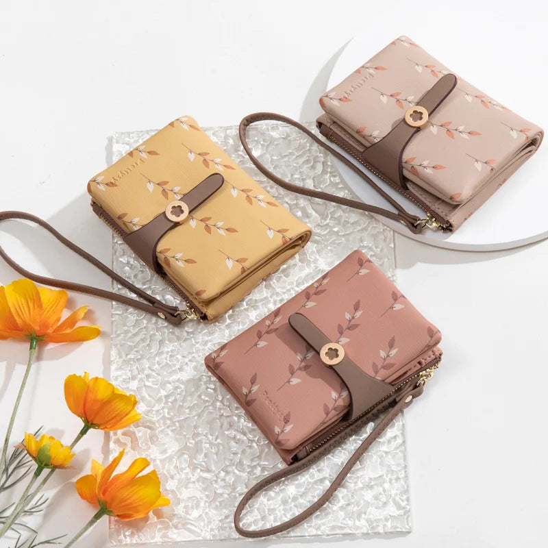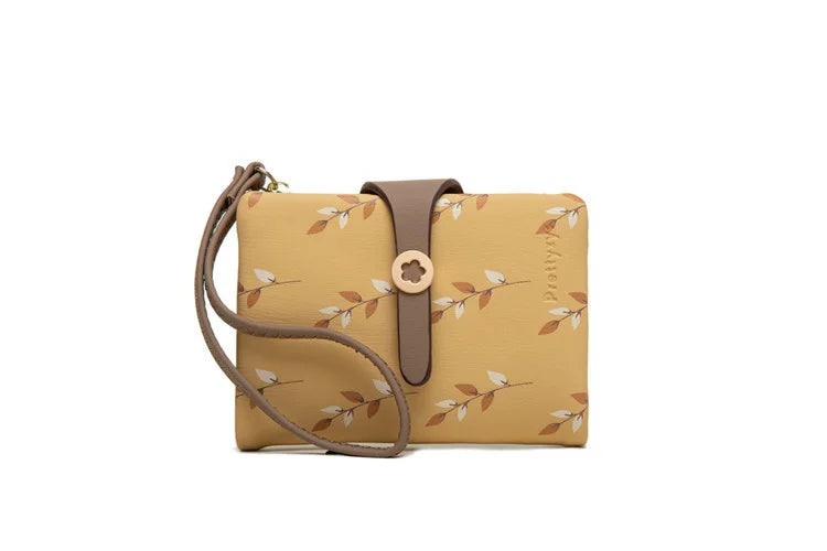 Stay organized with this small and stylish wallet featuring a fresh print design. It has a buckle closure and a two-fold handheld design.
