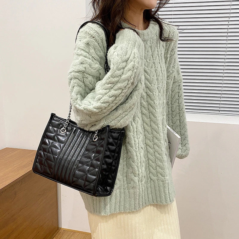 Quilted Chain Crossbody Tote Bag Leather Shoulder Bag