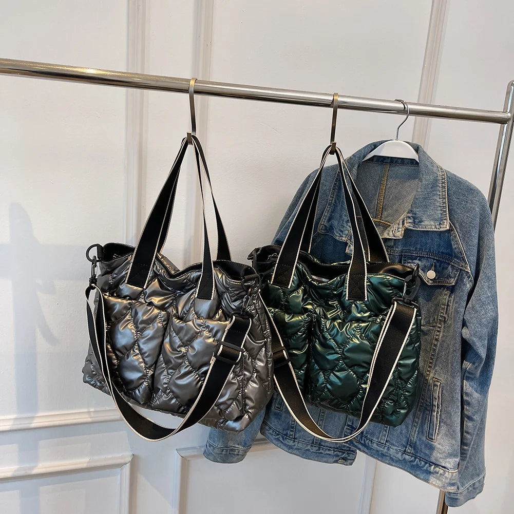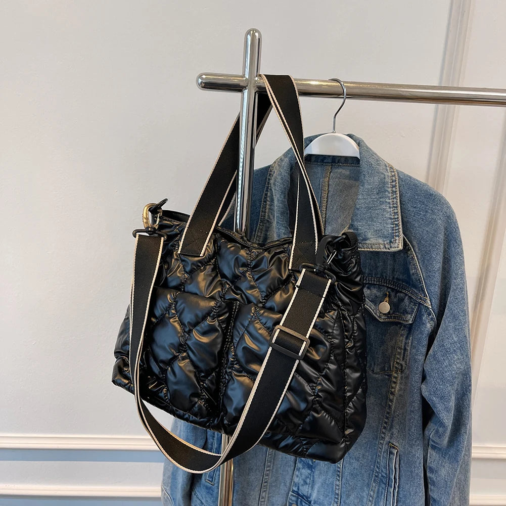 Quilted Cotton Padded Nylon Messenger Bag Women Ladies Crossbody Bags Totes