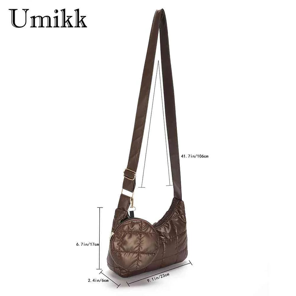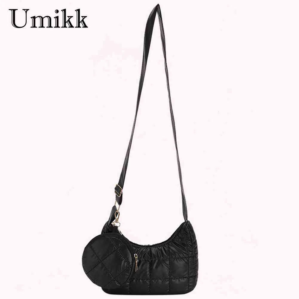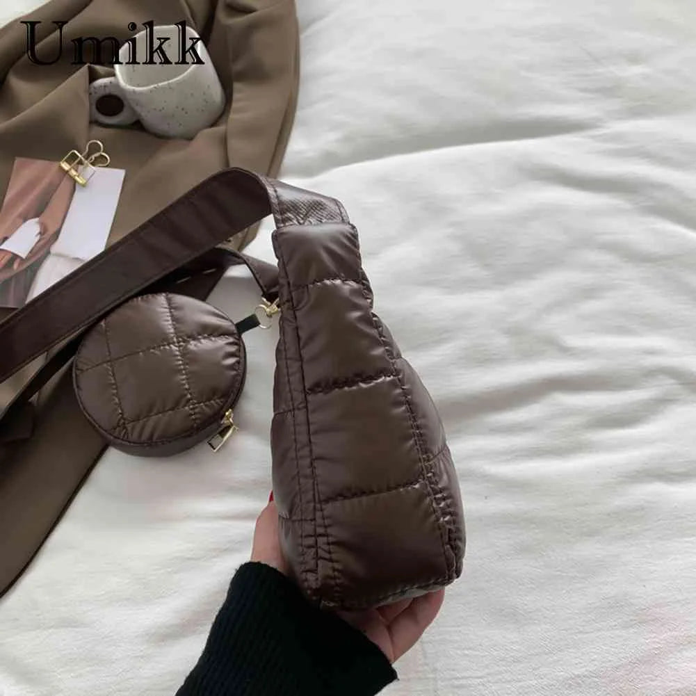 Stay stylish and cozy this season with this quilted cotton-padded shoulder bag. It features a soft, adjustable design with solid diamonds and includes a small round purse for added convenience.