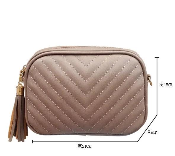 Stay stylish with this mini women's crossbody bag made of faux leather. Features quilted design, tassel chain, and perfect for carrying phone and essentials.
