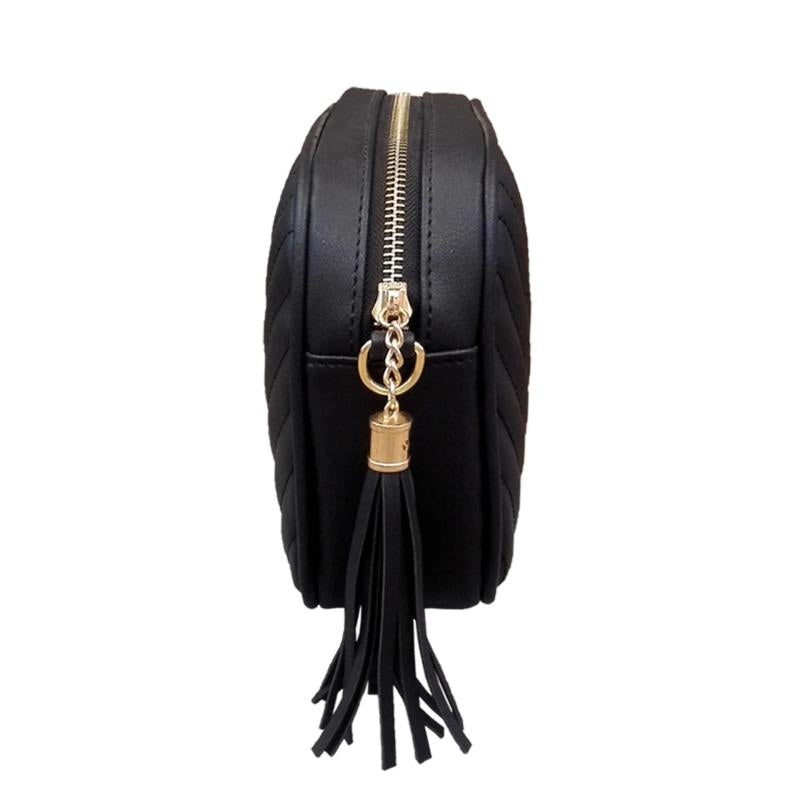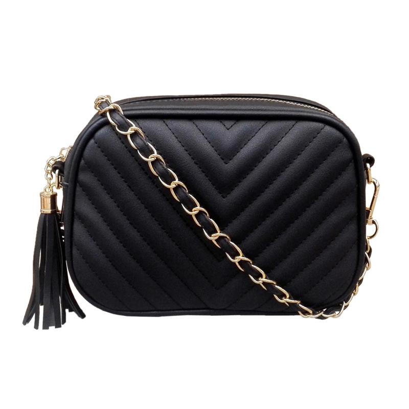 Quilted Faux Leather Crossbody Bag with Tassel Chain