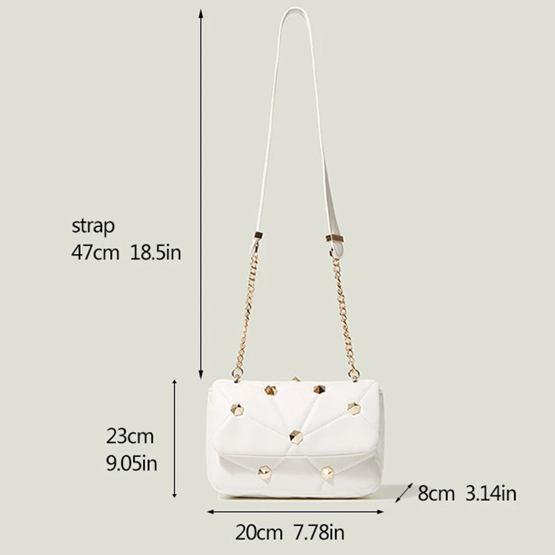 Quilted Rivet Crossbody Bag for Women - Small Flap Purses