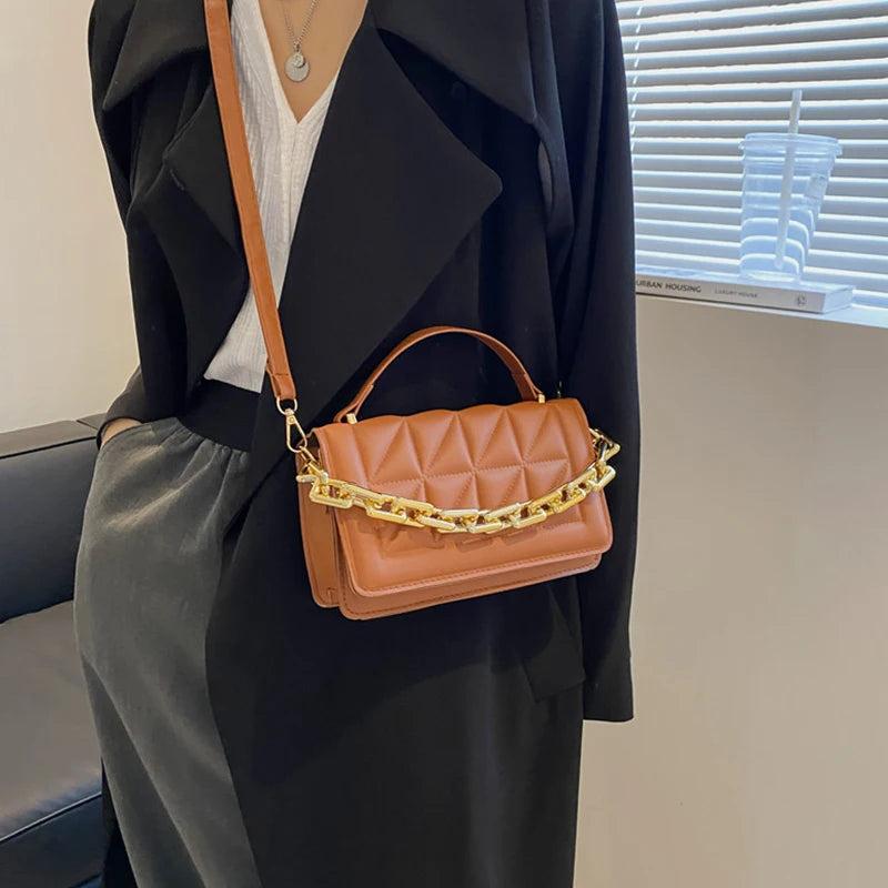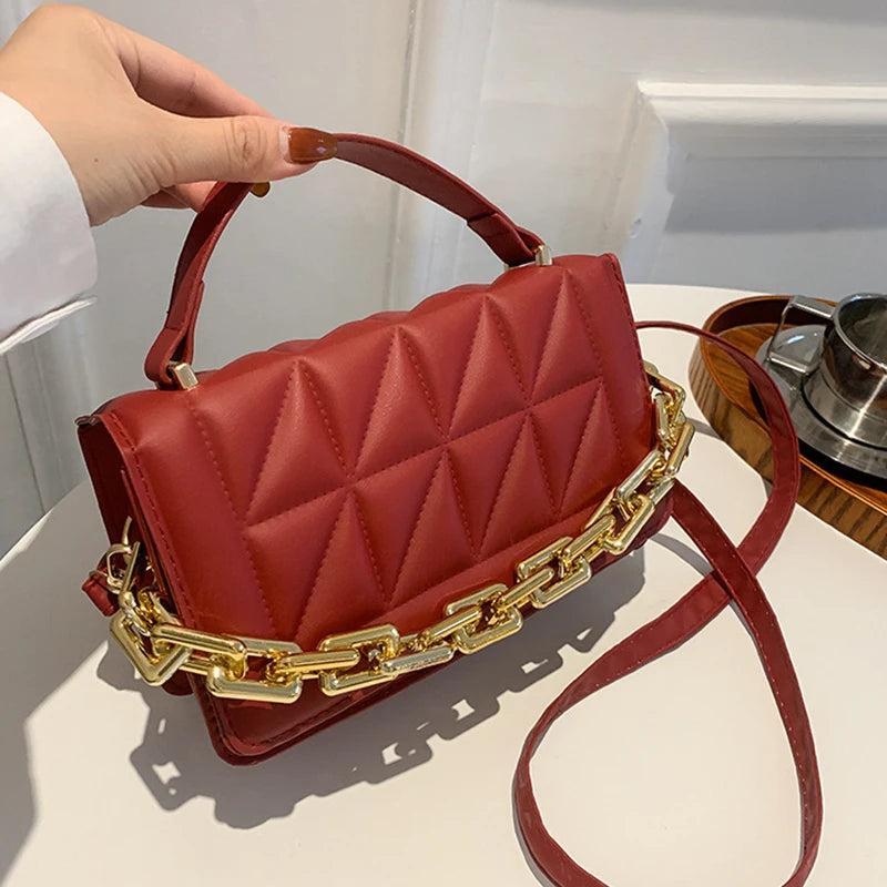Add a touch of elegance to your outfit with this PU leather quilted woman bag. Perfect for any occasion, this stylish shoulder bag features a chain strap for added flair.