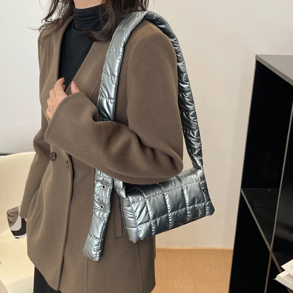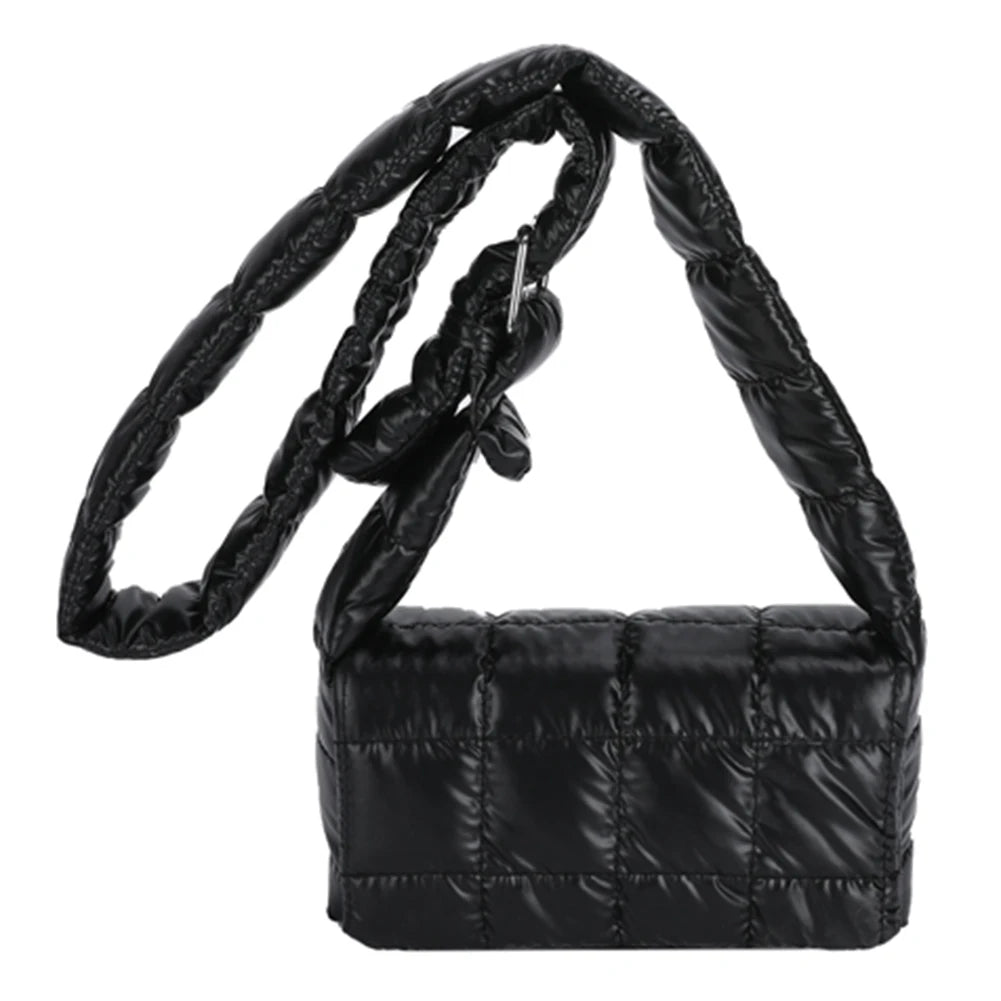 Stay stylish and organized with this quilted messenger bag. Perfect for autumn and winter, featuring a trendy check pattern and a convenient buckle closure.