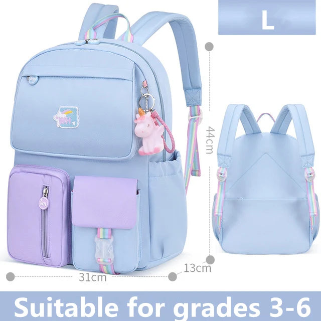 Description:Get this vibrant and trendy rainbow school backpack that's perfect for girls in grades 1-6. Ideal for travel and school use.Features: Suitable for girls in grades 1-6 Colorful rainbow design Great for travel and school Durable and stylish Two size options available This product may be available in additional colours...