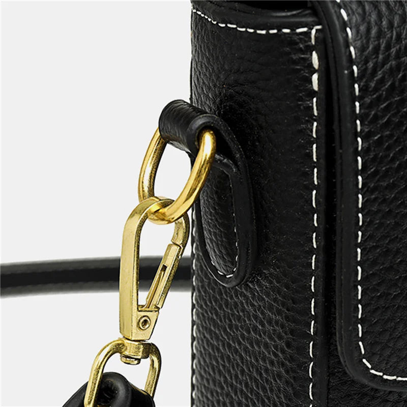 This small shoulder bag is crafted from genuine cowhide leather, making it durable and stylish. It is perfect for carrying your essentials and adds a touch of elegance to your outfit.