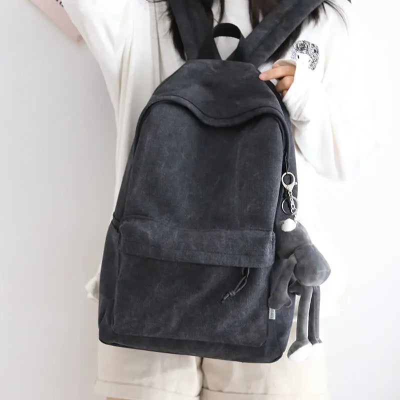 This solid and thickened canvas backpack offers a large capacity for students. It features a durable zipper and a stylish Harajuku design, suitable for both men and women.