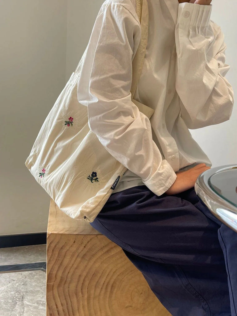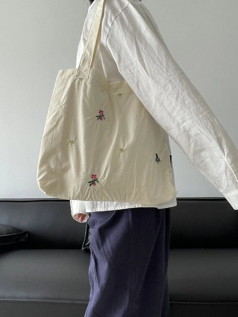 This retro floral embroidery shoulder bag is perfect for Mori-girl style lovers. It has a large capacity and is made of canvas, making it a casual all-match accessory for a retro pastoral look.