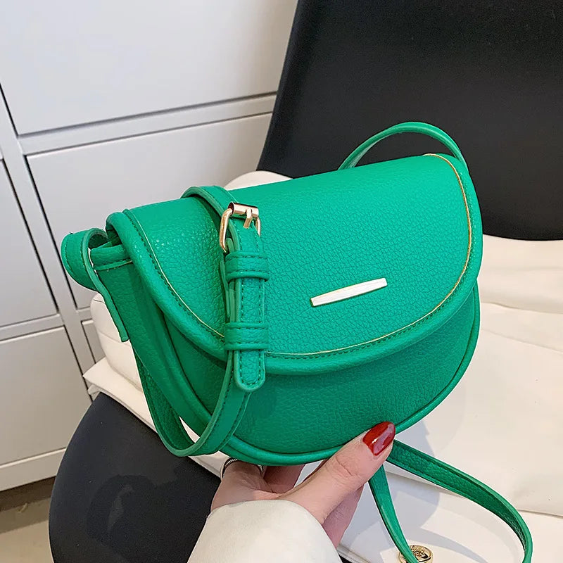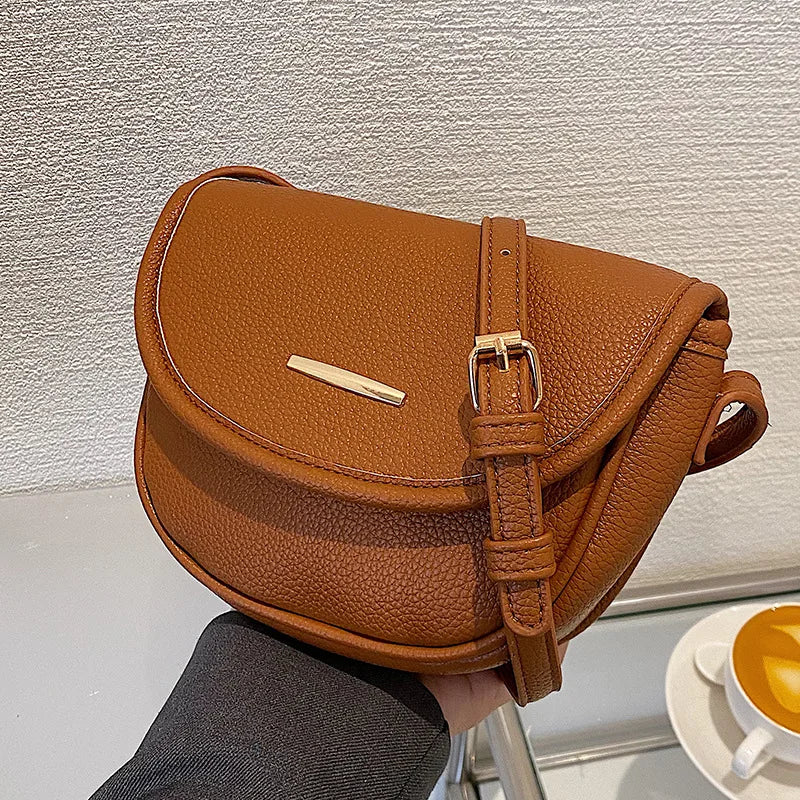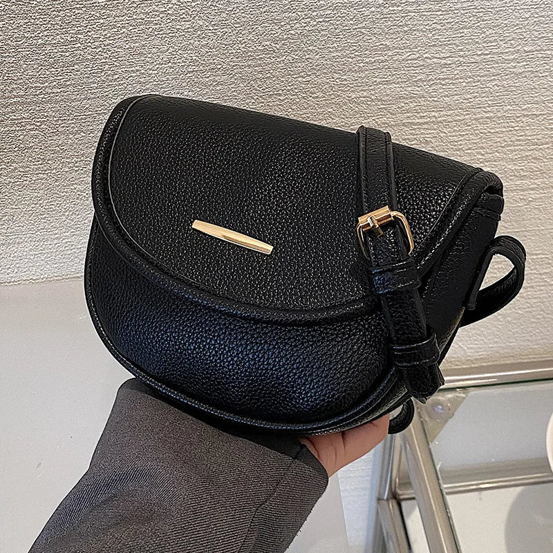 This high-quality shoulder bag is designed for women with a retro saddle bag style. The lychee pattern adds a unique touch to the design, making it a perfect accessory for any outfit.