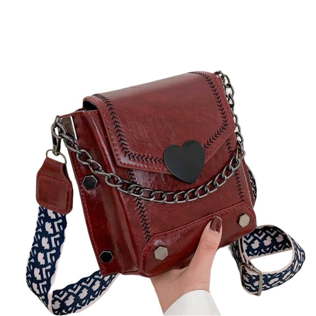 Retro Style Women PU Leather Messenger Crossbody Bag Heart Buckle Shoulder Purse