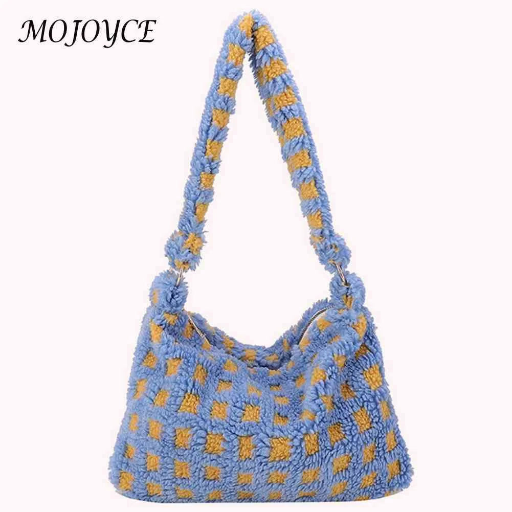 Retro Warm Autumn Winter Top-handle Bag Fluffy Women Soft Plush Zipper Small