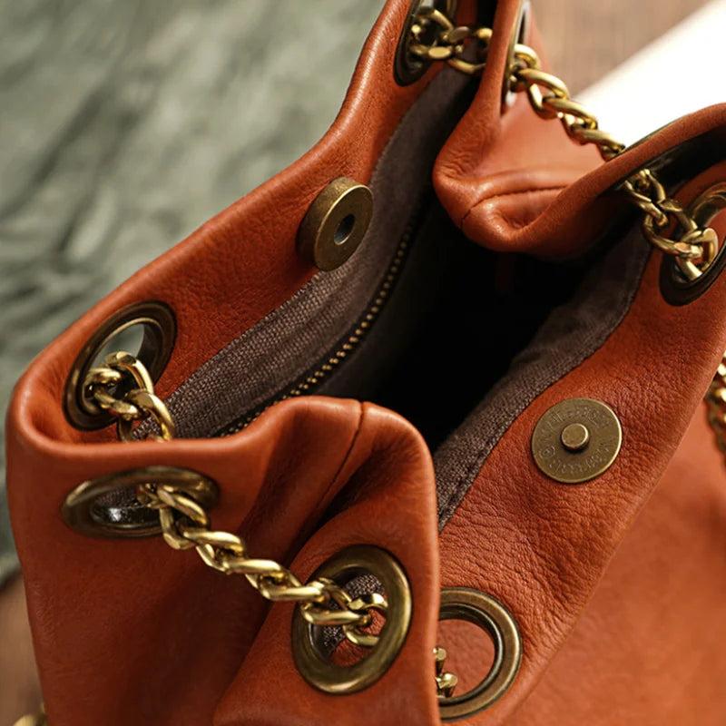 Description:Upgrade your fashion game with this vintage-inspired messenger bag made from vegetable-tanned leather. It features a stylish chain strap and tassel detail for a trendy look.Features: Vintage-inspired retro design Crafted from high-quality vegetable-tanned leather Features a chic chain strap for easy carrying Stylish tassel detail for added flair Spacious bucket...