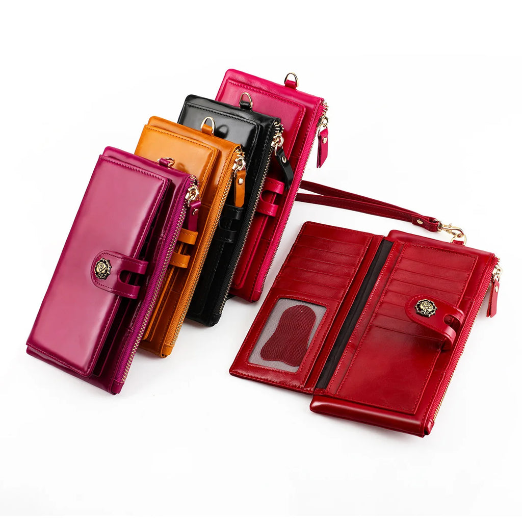 Stay secure with this multifunctional oil wax leather purse that features RFID protection to prevent degaussing. Perfect for carrying your essentials in style.