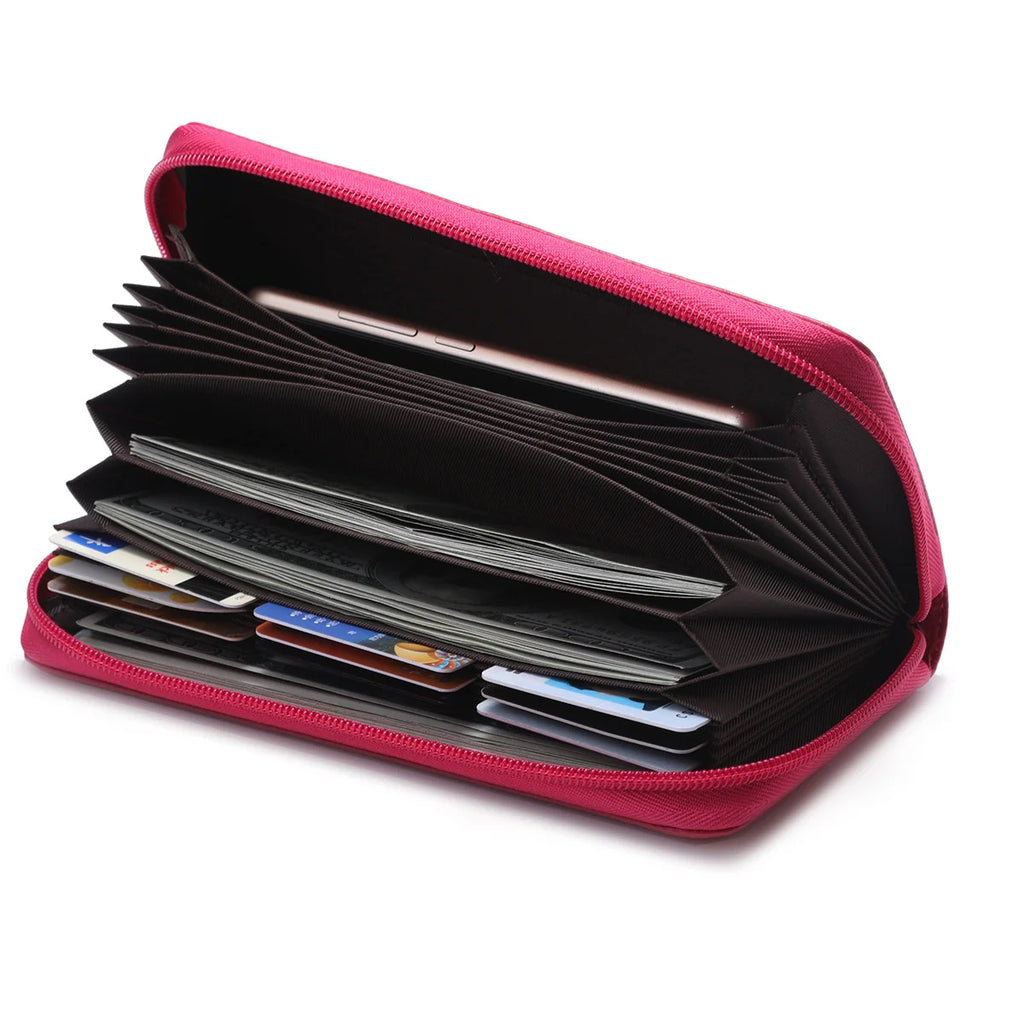 RFID Blocking Leather Long Wallet Zipper Card Bag