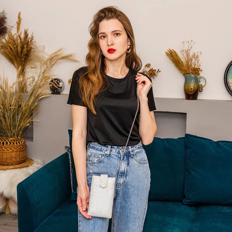 Rhinestone Crystal Chain Women Bag Small Shoulder Crossbody Purse