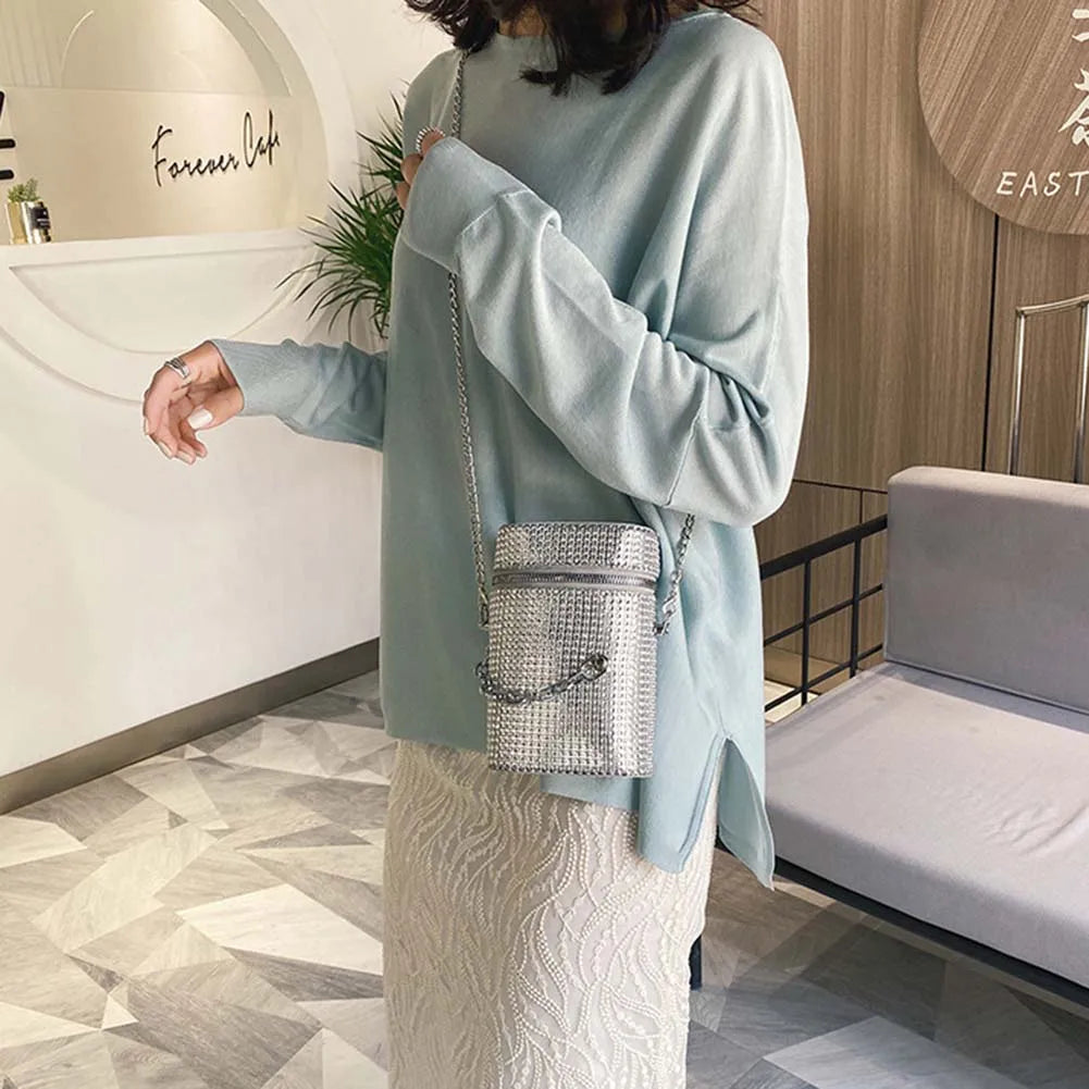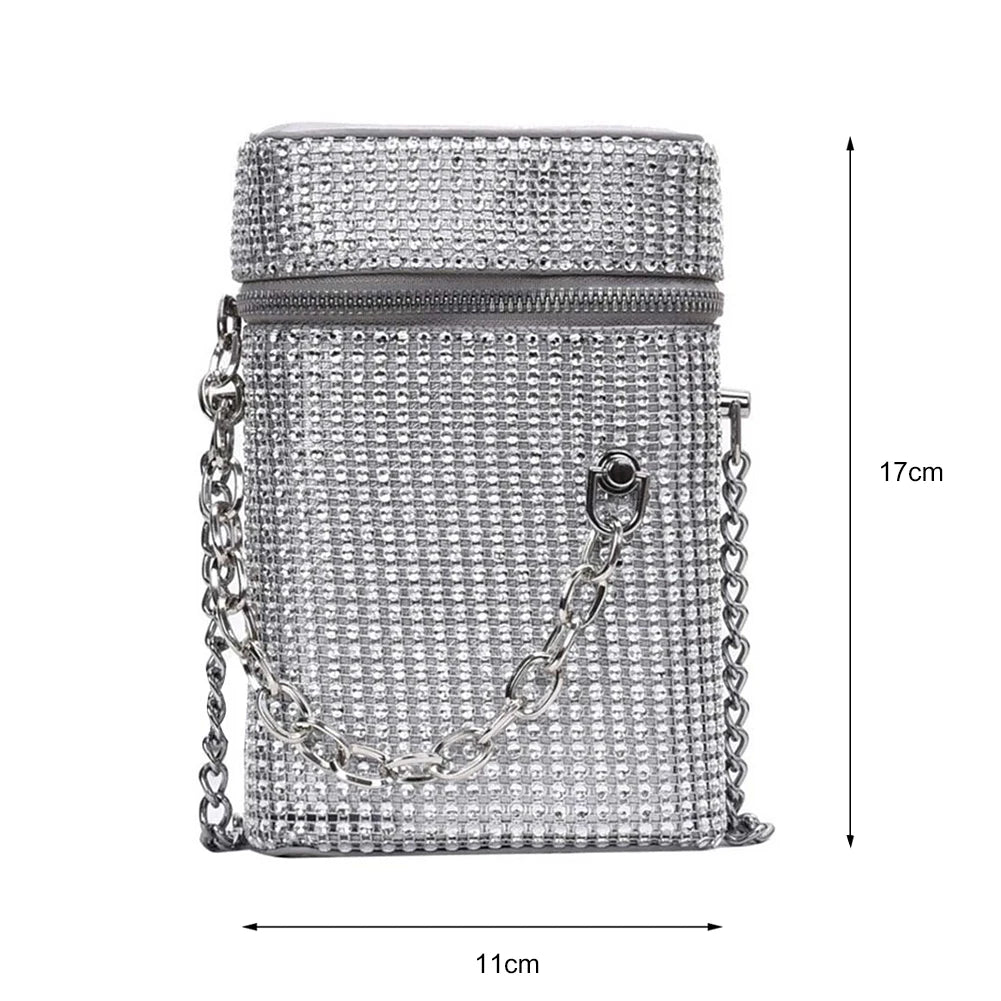 Elegant and stylish shoulder bag with rhinestones crystal design, perfect for evening events and parties.