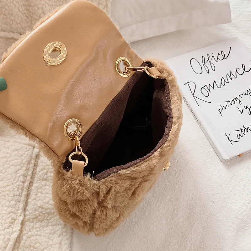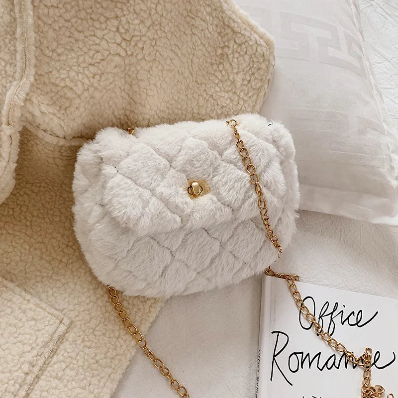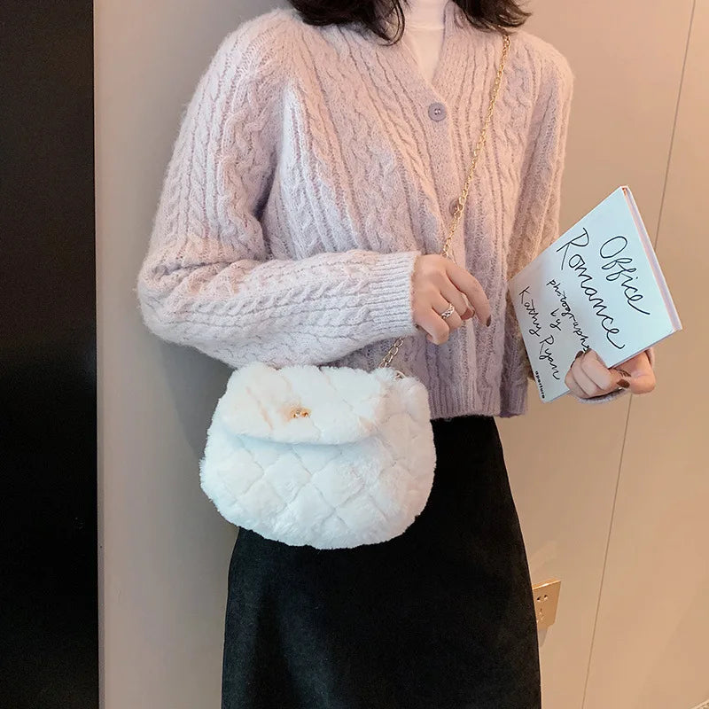 Rhombic Chain Bag Women Winter Crossbody Bag Autumn and Winter Wool Bag