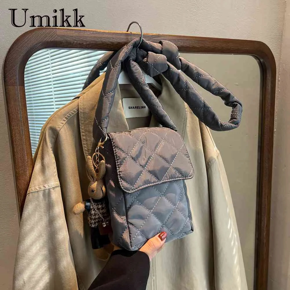 This small crossbody bag features a charming rhombic lattice design and comes with a cute rabbit toy. Made from soft cotton material, it's perfect for casual everyday use.