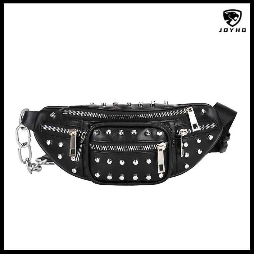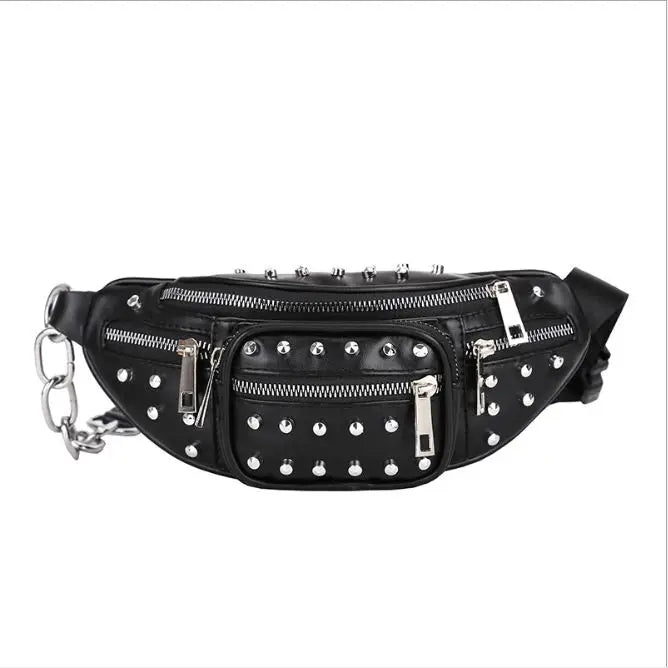 Rivet Style PU Waist Bag Chain Fanny Pack Steampunk Retro Rock Belt