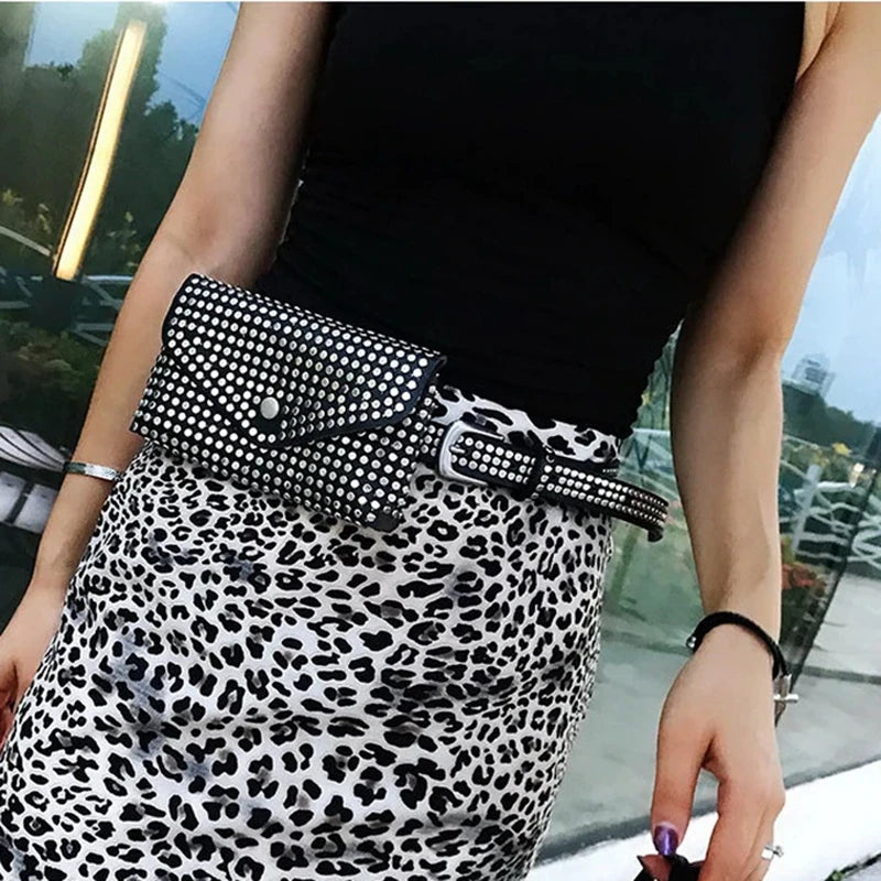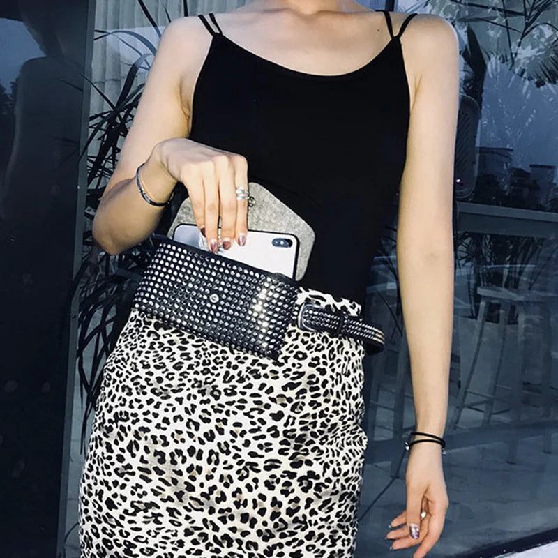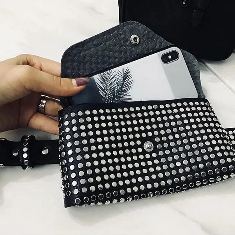 Rivets Waist Pack Fanny Pack Small Women Waist Bag Phone Pouch Punk Belt Bag