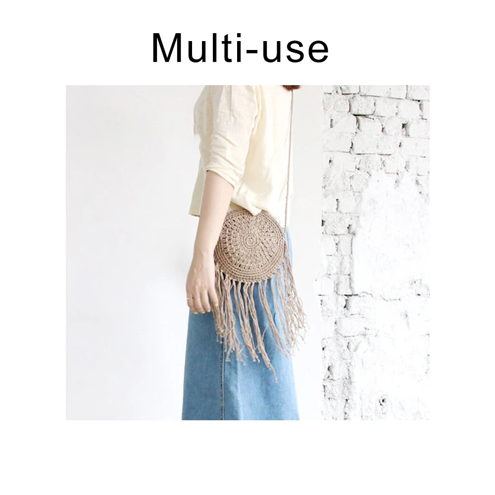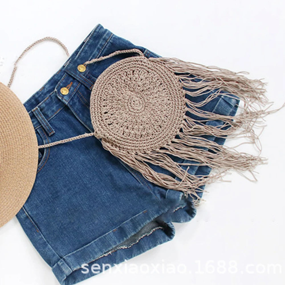 Round Straw Beach Bag Bohemian Woven Shoulder Bag