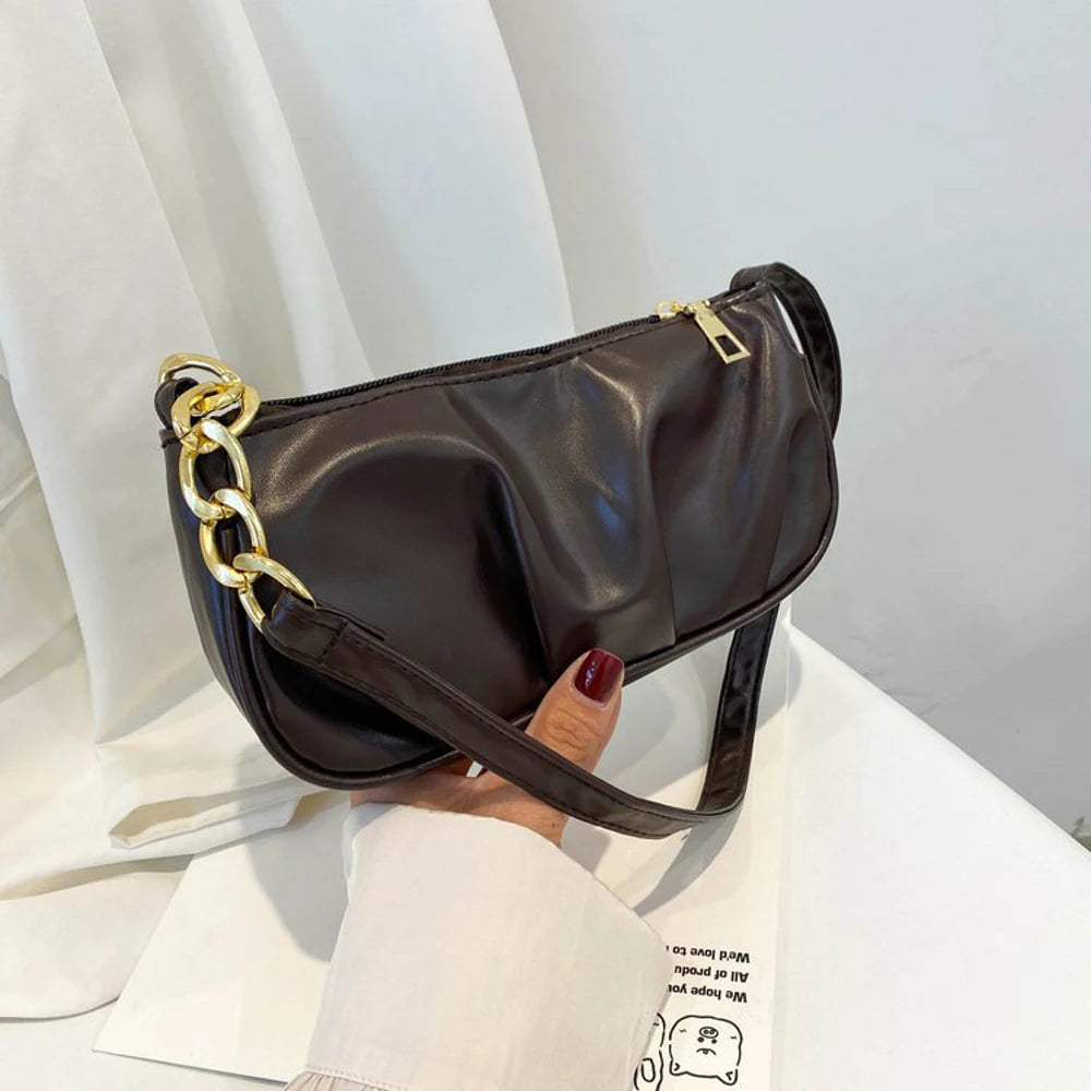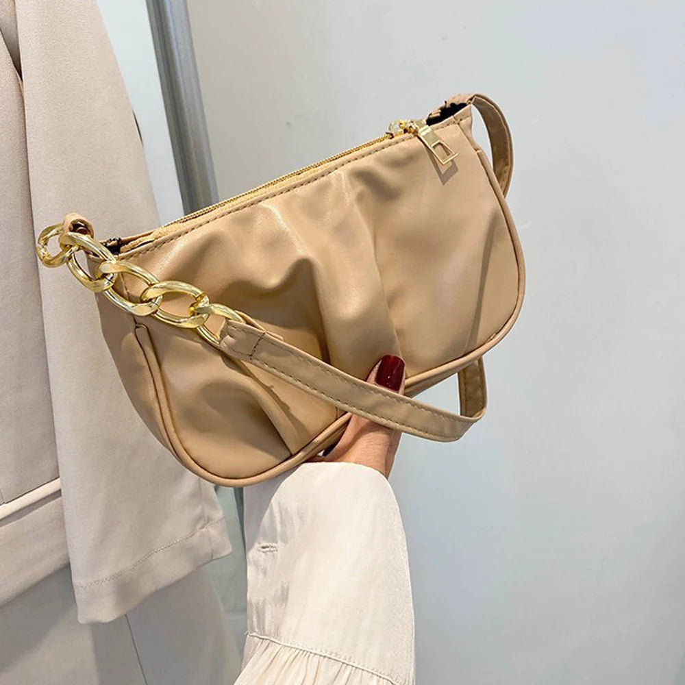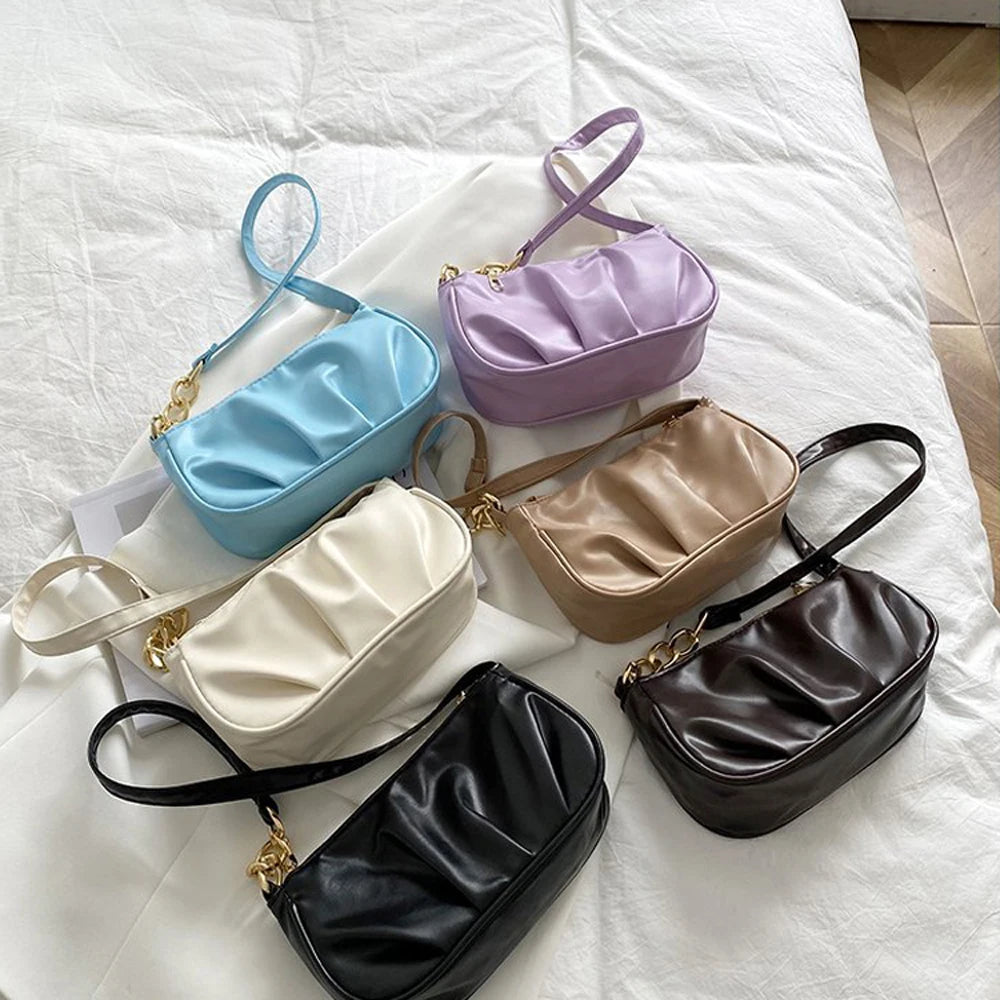 This portable mini bag features a stylish ruffled cloud design with a chain strap, perfect for casual outings. Can be worn as a shoulder bag or underarm bag.